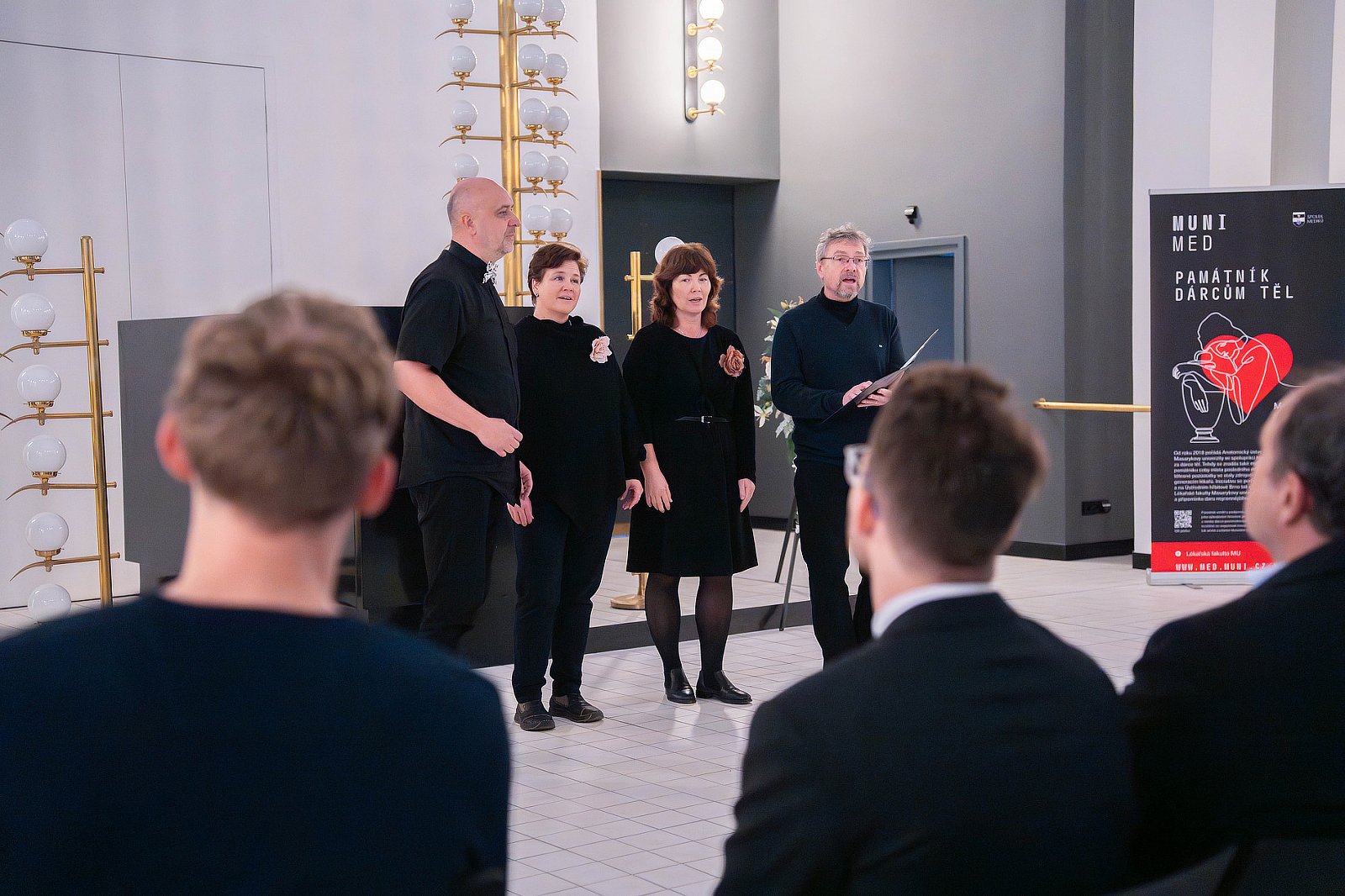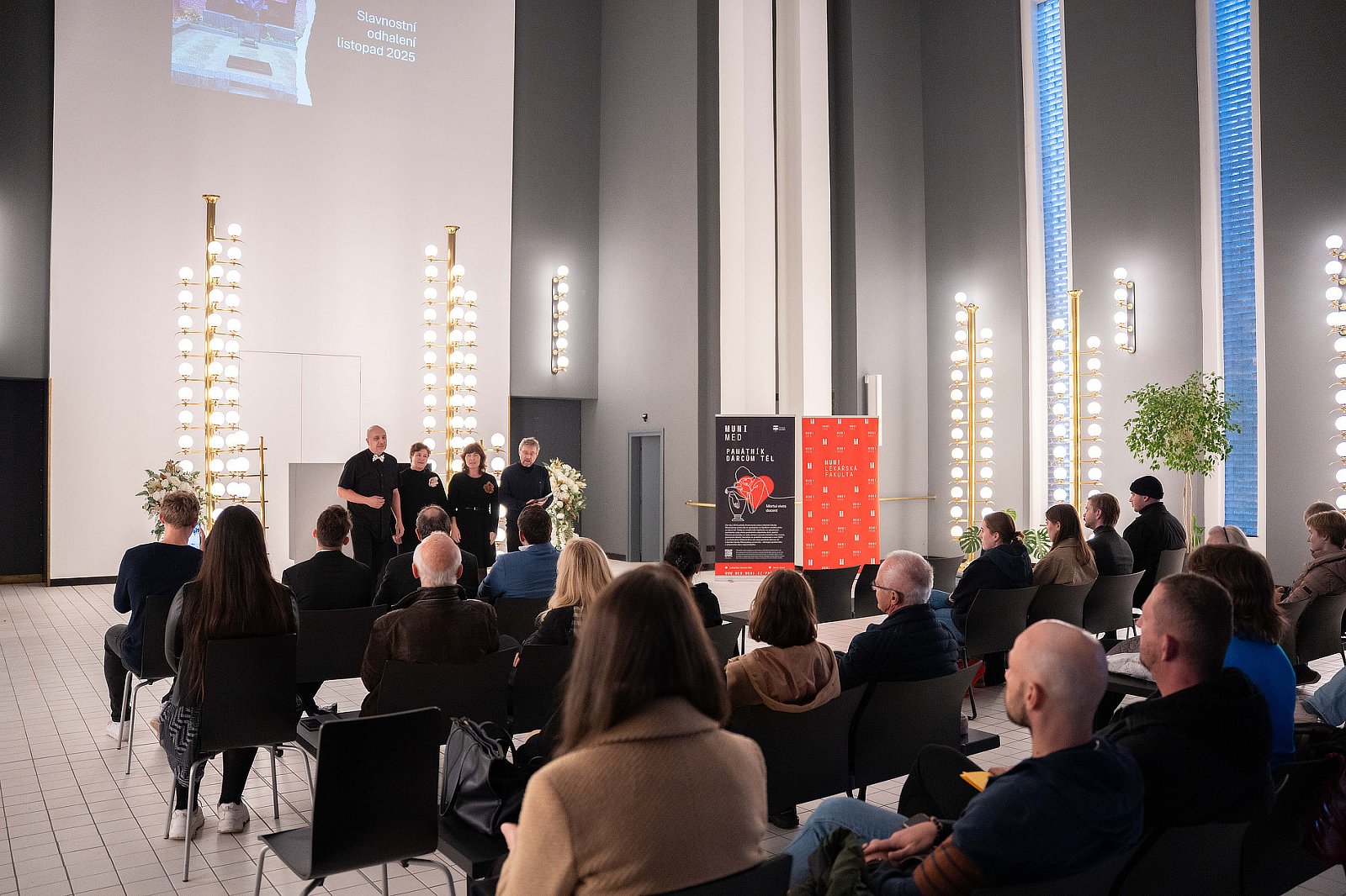 V pondělí 3. listopadu 2025 jsme zazpívali na pietním koncertu za dárce těl. Uspořádáním tohoto koncertu chce Lékařská fakulta Masarykovy univerzity (LF MU) s hlubokou vděčností poděkovat všem, kteří svým velkorysým darem umožnili, aby Anatomický ústav LF MU byl i nadále místem kvalitního vzdělávání lékařů.